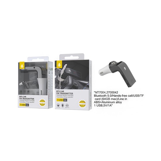 ADAPTADOR DE TRANSMISSOR BLUETOOTH ALUMÍNIO ONEPLUS NE NT7004 USB/CARTÃO TF 5V/1A PRETO
